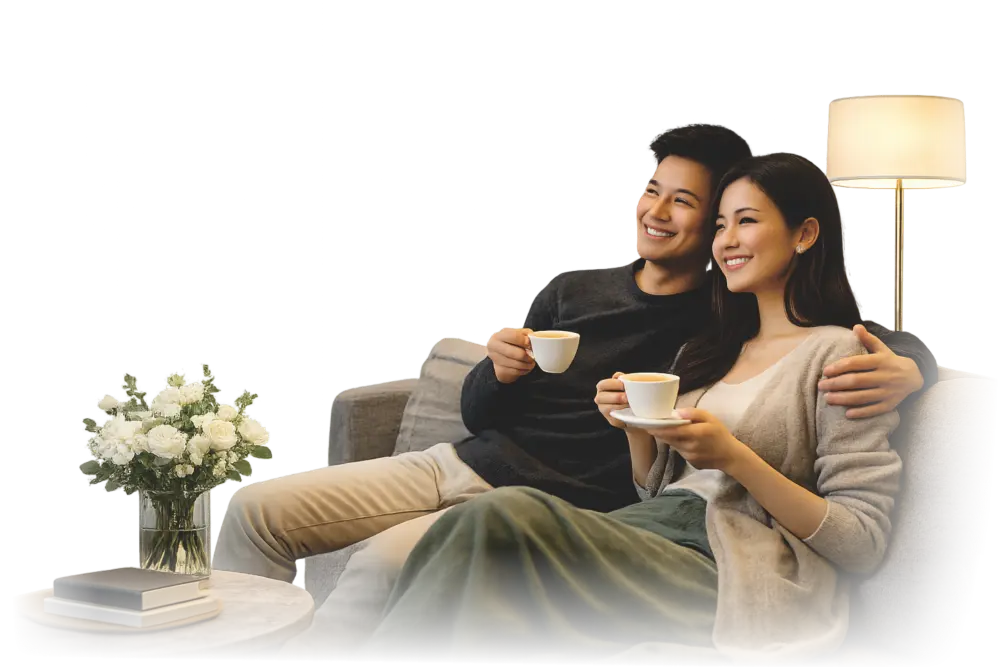 Ruang tinggal dengan desain kontemporer dan ambience eksklusif untuk pengalaman hidup yang lebih elevated.